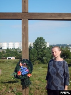 Міхась Булавацкі з дачкой аднаго з растарляных Ядзьвігай Антонаўнай. Яе бацьку растралялі ў 1937 годзе ў кар’еры па-над якім цяпер крыж