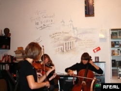 Дзяўчаты з Каледжу мастацтваў стварылі калядны настрой і ўтульную атмасфэру на адкрыцьці выставы.
