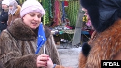 Сьвяточная акцыя праходзіла на кірмашы – самым людным месцы Глыбокага. Тамтэйшыя актывісты раздалі землякам некалькі соцень сьцяжкоў Эўразьвязу з пажаданьнямі весела адзначыць сьвяты, а ў пэрспэктыве – сьвяткаваць Божае Нараджэньне ў сапраўды эўрапейскай Беларусі.
