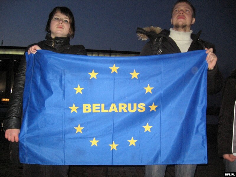 Лунёва: Больш за 150 актывістаў моладзевых арганізацый «Маладая Беларусь», «Джынс за свабоду» і «Малады фронт» ладзяць акцыю на знак салідарнасьці зь Мікалаем Аўтуховічам, Юрыям Лявонавым, Уладзімерам Асіпенкам і Арцёмам Дубскім. Маладыя людзі трымаюць партрэты, і зьвяртаюць увагу, што пад пагрозай зьняволеньня застаюцца пакараныя па так званыя справы 14-ці. Супрацоўнікі міліцыі назіраюць за гэтай акцыяй, тут таксама байцы спэцназу. Ніякага загаду разганяць акцыю не было. Сярод палітыкаў я бачу лідэра ПБНФ Лявона Баршчэўскага. Маладыя людзі скандуюць «Свабоду палітвязьням!».