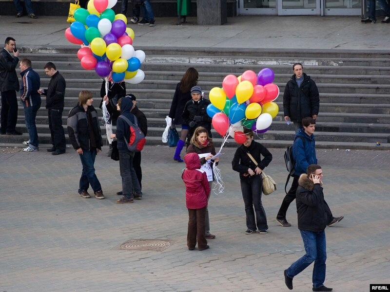Актывісты раздавалі мінакам рознакаляровыя надзіманыя балёнікі і нагадвалі пра роўнасьць правоў людзей розных рас і нацыянальнасьцяў.