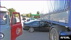 У Барысаве сёньня на скрыжаваньні вуліц Чапаева і Будаўнікоў легкавік “Хонда” сутыкнуўся з фурай “МАН”. Здымак даслаў “Свабодзе” наш слухач Міхаіл Васільеў.
