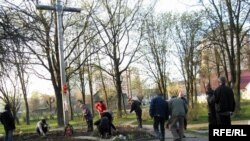 На Дзяды актывісты палітычных партый і грамадзкіх арганізацый у Баранавічах упарадкавалі тэрыторыю ў гарадзкім парку, дзе яшчэ ў 1992 годзе ўсталяваны “Крыж памяці” ахвярам сталінскіх рэпрэсій.