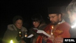 Прысутныя усклалі кветкі, запалілі сьвечкі. Памінальную службу ў памяць пра расстраляных тут людзей правёў уніяцкі сьвятар айцец Аляксандар.