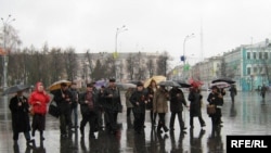 Нягледзячы на моцны дождж, каля двух дзесяткаў камуністаў сабраліся на цэнтральным пляцы й усклалі чырвоныя гвазьдзікі да помніка Леніну.