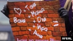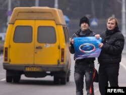 Каля 30 маладых людзей сёньня зранку выйшлі ўздоўж праспэкту Незалежнасьці з плякатамі і чырвонымі стужкамі (сымбалем барацьбы са СНІДАМ).