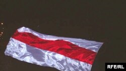 Віцебскі апазыцыянэр Барыс Хамайда, атрымаўшы зьвесткі пра зьяўленьне сьцяга з вартых даверу крыніц, працытаваў для Радыё Свабода зьмест цыдулкі, прымацаванай да сьцяга. Там напісана: "Віншую з Калядамі і Новым годам! Жадаю ўсім, хто любіць Беларусь, нарэшце пазбавіцца ад вядомага "сказочника", каб беларус мог вольна пачувацца на роднай зямлі. Тады ў нас будзе і шчасьце, і здароўе, і добры настрой на доўгія гады. Жыве Беларусь! Жыве вечна! Мірон".