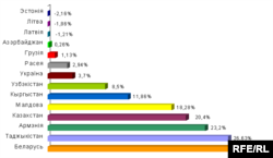 Паводле вынікаў пяці і дзевяці месяцаў мінулага года Беларусь знаходзілася на другім месцы (наперадзе быў Таджыкістан), дзесяці месяцаў — на чацьвёртым (Таджыкістан, Армэнія, Казахстан), у астатнія пэрыяды — на першым.