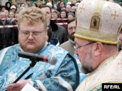 «Мы робім закладку храма ў гонар сьвяціцеля, цудатворцы Мікалая, цяпер менавіта пачынаецца яго будаўніцтва — Сьвятанікольскай царквы пры кансысторыі духоўнай, пры епархіяльнай управе. Мы заклалі камень з выявай крыжа Гасподняга, асьвечаны ялеем, а таксама заклалі ампулу з граматай».