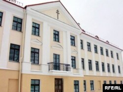 Яна знаходзіцца ў месцы, якое гарадзенцы называюць «архірэйскім падворкам» — гэта палацавы комплекс канца ХVІІІ стагодзьдзя. Ён належаў праваслаўнай царкве, тут была рэзыдэнцыя япіскапа яшчэ ў пасьляваенныя гады, затым савецкая ўлада высяліла царкоўнікаў. Цяпер будынкі вярнулі япархіі. Палац звонку адрэстаўраваны, на франтоне зьявіўся крыж на ўзор крыжа Эўфрасіньні Полацкай.