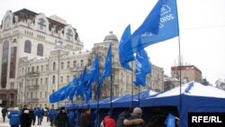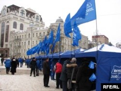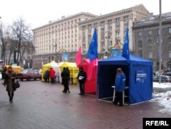 Адзіны майдан у Кіеве на сёньня – блакітны. На Сафійскай плошчы рыхтуюць мітынг і канцэрт у падтрымку кандыдата ад апазыцыйнай Партыі рэгіёнаў Віктара Януковіча.