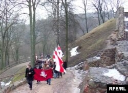 Ніякага памятнага знаку на Замкавай гары ў Вільні, дзе пахаваны Кастусь Каліноўскі, цяпер няма, хаця месца пахаваньня дакладна вядомае. На гэтым месцы удзельнікі шэсьця запалілі сьвечкі, усклалі кветкі.
