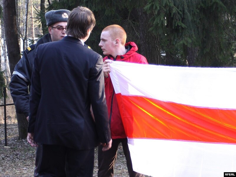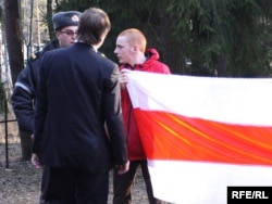 Актывісты з «Маладой Беларусі» разгарнулі сьцягі.