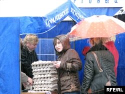 На гарадзенскім велікодным кірмашы, што адбываецца гэтымі днямі, амаль увесь час падае дождж. Пра дэфіцыт ранейшых гадоў забыта, можна набыць колькі хочаш яек і пафарбаваць іх да сьвята. Як паведамляе надпіс на фургоне, яны атрыманыя “на натуральных кармах без кансэрвантаў і дадаткаў”.