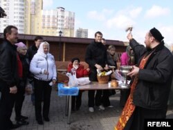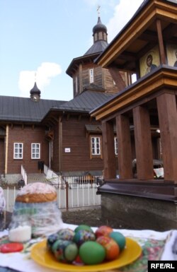 Фотарэпартаж асьвячэньня велікодных страваў з прыходу ў гонар сьвятога Серафіма Сароўскага ў Менску.