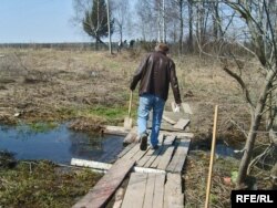 Каб прайсьці да могілак, вяскоўцы паклалі драўляныя масткі. Па іх цяпер і ходзяць.