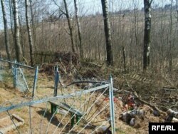 Гады два таму на могілках былі работнікі. Яны, як сьцьвярджаюць вяскоўцы, толькі пасьпелі зрабіць агароджу. Цяпер яна амшалая ляжыць покатам.