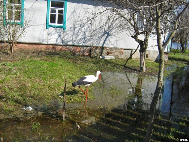 Разводзьдзе прымусіла шукаць паратунку нават буслоў. Пажывіцца ў пойме ракі яны ня могуць — усё заліта вадой. Буслы сталі прылятаць у гарод бабулі Праскоўі, каб на мелкаводзьдзі знайсьці сабе здабычу.