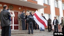 Яны прыйшлі да пастарунку, каб падтрымаць віцебскага актывіста КХП БНФ Сяргея Каваленку, якога затрымалі за разгортваньне бел-чырвона-белага сьцягу ў залі судовага паседжаньня Кастрычніцкага райсуду.