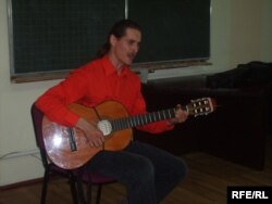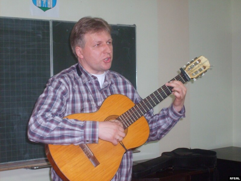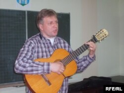 Васіль Аўраменка свой выступ пачаў з разважаньняў пра адметнасьць беларускамоўнай бардаўскай песьні:
