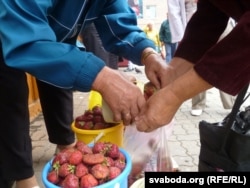 Такая ж сытуацыя і з трускалкамі. За вядзерца з двума-трыма кіляграмамі ягад просяць да трыццаці тысяч рублёў. Таргавацца прадаўцы ня маюць ахвоты.
