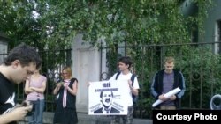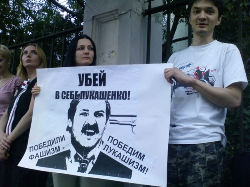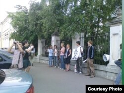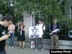 ля беларускай амбасады ў Маскве з патрабаваньнем вызваліць палітычных вязьняў.