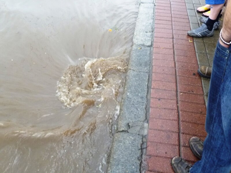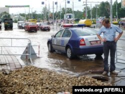 Залева з “патопам” ў Віцебску была і ўчора. Але камунальныя службы нічога выправіць не змаглі -- вялікую колькасьць “ліўнёвак” ужо даўно “закаталі” асфальтам, наводзячы ў горадзе лоск перад чарговым фэстывалем.