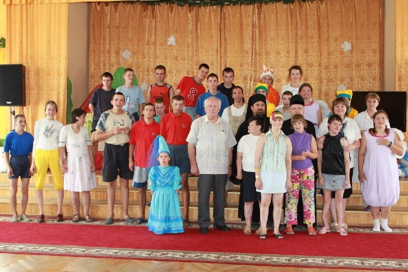 Дырэктар азнаёміла гасьцей з вялікай гаспадаркай дому-інтэрнату, у якім стала знаходзіцца каля 300 дзяцей-інвалідаў. У актавай зале інтэрнату Ўладыка Сьвятаслаў, айцец Леанід Акаловіч і двое вернікаў рэлігійнае Суполкі Сьв. Эўфрасіньні Полацкае ў Менску разам з прысутнымі адслужылі Малебен за выздараўленьне хворых, пасьля якога была перададзена невялічкая дапамога, грошы на якую сабрала царква Сьв. Кірылы Тураўскага г. Таронта ў Канадзе. Пасьля чаго дзеці паказалі кароткі канцэрт гасьцям і пэрсаналу.