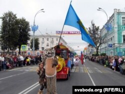 “Тут ужо нас паставілі. Пастраеньне ідзе. Сёньня ж сьвята – Дзень гораду. Мы ўдзельнічаем менавіта ў маскарадным шэсьці”.