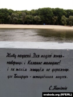 Ну, і на набярэжнай Сожа нечыя добрая рука напісала чатырохрадкоўе зь верша Сяргея Панізьніка – хіба што адзіны найбольш выразны сымбаль беларускасьці Гомеля.