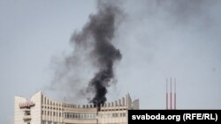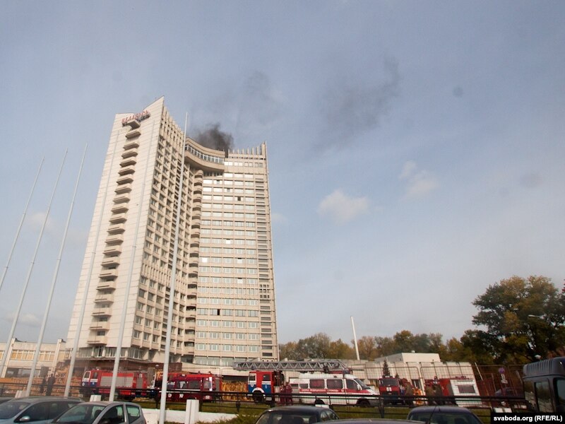 На даху гатэля "Беларусь" адбыўся пажар.