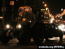19:30 Міліцэйскі эвакуатар пацягнуў аўтамабіль «Мэрсэдэс» у бок плошчы Якуба Коласа.