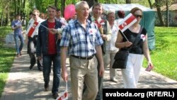 Некалькі дзесяткаў актывістаў прайшлі цэнтральнымі вуліцамі ў парк культуры і адпачынку імя 1 Траўня. Удзельнікі акцыі несьлі партыйныя сьцяжкі, бел-чырвона-белыя стужкі й балёнікі. Па дарозе яны раздавалі мінакам віншавальныя паштоўкі.