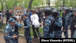 У Маскве на Манежнай плошчы паліцыя затрымала некалькі дзясяткаў актывістаў, якія сабраліся ў дзень інаўгурацыі прэзыдэнта Расеі Ўладзімера Пуціна на акцыю пратэсту супраць несумленных выбараў.
