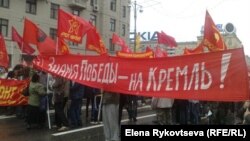 Як паведамляюць у Твітэры ўдзельнікі «Маршу перамогі», шэсьце суправаджаюць узмоцненыя нарады паліцыі. Камуністы нясуць лёзунг «Сьцяг перамогі — на Крэмль», некаторыя дэманстранты скандуюць «Дзяды ваявалі, вы параскрадалі», а таксама «Перамаглі Гітлера, пераможам і Пуціна.»