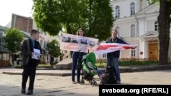 Алена Каваленка трымала плякат “Міліцыя хлусіць! Свабоду Сяргею Каваленку ад перасьледу!”, сын Валік раздаваў улёткі з тэкстам: “Свабоду Сяргею Каваленку!».