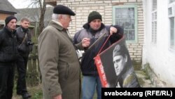 З могілак імпрэза перамясьцілася да роднай хаты Анатоля ў цэнтры вёскі Гарошкаў.