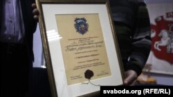 Згодна з традыцыяй ганаровую грамату «Рыцара году» Раісе Міхайлоўскай павінен быў уручаць мінулагодні намінант. Аднак зрабіць гэта сёньня было немагчыма. Апошні ляўрэат, былы кандыдат на прэзыдэнта Мікола Статкевіч — за кратамі. І таму ганаровы абавязак узяла на сябе ягоная жонка — Марына Адамовіч. Яна назвала Раісу Міхайлоўскую «сапраўдным рыцарам у жаночым абліччы»: