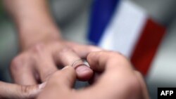 Некалькі дзясяткаў паліцыянтаў ахоўваюць парадак вакол мэрыі горада Монпэлье на поўдні краіны. На цырымоніі ў якасьці прыватнай асобы прысутнічае прэс-сакратар ураду Францыі.