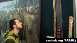 «Мы прэзэнтуем вам выставу, якую нам прадставіў шаўляйскі музэй „Аўшрос“. Прадстаўленыя ня толькі рэчы зь Літвы, ёсьць таксама — з нашага музэю. На выставе вельмі цікавыя экспанаты, аўтэнтычныя, якія належалі як паўстанцам, так і тым, хто гэтае паўстаньне душыў».