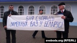 Транспаранты: «БНФ супраць замежных базаў», «Мы самыя здольны абараніць сваю краіну», «Мы не мішэні».