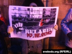 Пратэстоўцы трымалі ў руках бел-чырвона-белыя сьцягі і плякаты, якія нагадвалі пра падзеі трохгадовай даўніны.