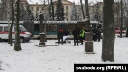 Аўтобус № 17 вылецеў з праезнай часткі на тратуар, зьнёс лаўку і скрыні, урэзаўся ў дрэва. Пад аўтобусам апынулася жанчына-пешаход. На месцы аварыі працуюць ратавальнікі, брыгады хуткай мэдыцынскай дапамогі.
