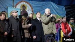 Напярэдадні на народным вечы на плошчы Незалежнасьці ў Кіеве актывісты «Майдана» прапанавалі дэпутатам зацьвердзіць на пасадзе прэм’ера лідэра фракцыі «Бацькаўшчына» Арсенія Яцанюка. На веча быў прыняты і склад урада народнага даверу, які будзе вынесены на галасаваньне Вярхоўнай Радай. Многія пасады ў ім займаюць актывісты Майдану.