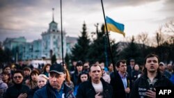 Украінскія патрыёты плянуюць сабрацца на мітынг, нягледзячы на пасіўнасьць мясцовых праваахоўнікаў і пагрозы з боку сэпаратыстаў.