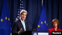 «Толькі украінцы маюць права вызначаць сваю будучыню», — заявіў дзяржаўны сакратар ЗША Джон Керы падчас сумеснай заявы з вярхоўным прадстаўніком ЭЗ па замежных справах Кэтрын Эштан па выніках чатырохбаковых перамоваў ЗША-ЭЗ-Украіна-Расея ў Жэнэве.