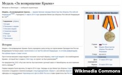 Існуе і артыкул у расейскай Вікіпэдыі з фатаграфіяй авэрсу гэтага мэдаля, на якім відаць згаданую загадкавую дату «вяртаньня Крыму».