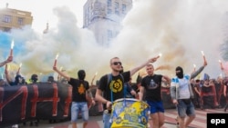 Удзельнікі шэсьця скандавалі «Адна -адзіная свабодная Ўкраіна», " Украіна вышэй за ўсё", "Слава Украіне! Героям слава«, а таксама крычалкі супраць прэзыдэнта Расеі Ўладзімера Пуціна.