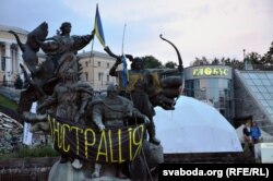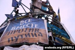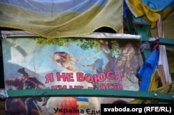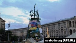 Ёлка крыху зьмяніла выгляд, але і дагэтуль стаіць сярод шматлікіх намётаў пратэстоўцаў на кіеўскай плошчы Незалежнасьці. Сьцягі пашкуматаў вецер, сярод плякатаў рэвалюцыйнай тэматыкі зьявіліся і новыя, прысьвечаныя актуальным падзеям ва Ўкраіне.