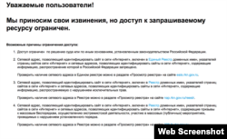 На старонках зьмешчана інфармацыя, што «доступ да сайту абмежаваны ў адпаведнасьці з заканадаўствам Расейскай Фэдэрацыі». У прыватнасьці, адзначаецца, што «сайт можа ўтрымліваць інфармацыю, распаўсюд якой на тэрыторыі Расеі забаронены».